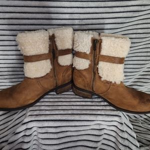 Ugg Blayre II leather and sheepskin belted winter boots, chestnut brown, size 10