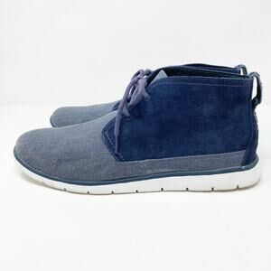 Ugg Blue Suede & Canvas Chukka Boots Men's Size 12 EUC Lace Up Shearling Footbed