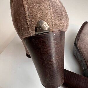 Ugg Bootie Women 10 Leather Suede Pull On Strap Heel Ankle Work Party Core Ex