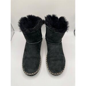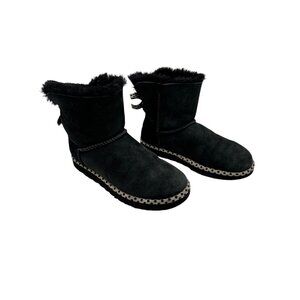 Ugg Boots Women 7 Black Ivory Polka Dot Trim 78 Bailey Bow Classic Mini Outdoor