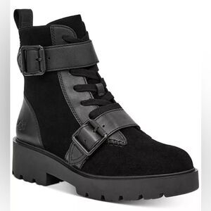 Ugg Boots Women’s 5 Zorrah Black Suede Leather Combat Ankle with Buckle Detail