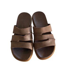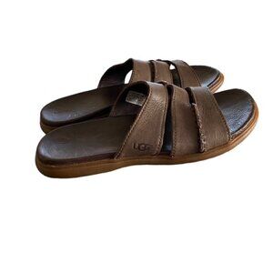 UGG Brown leather slide sandal 1002248 Leather upper Rubber sole Size: 8 Very good pre-owned condition