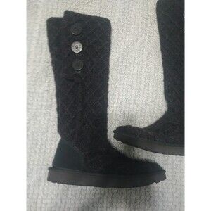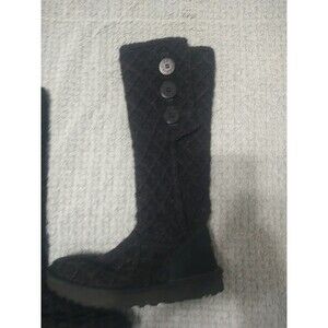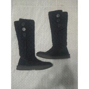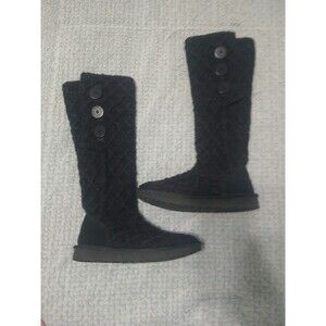 Ugg Button Sweater Sock Boots 7 Black Y2K Cozy