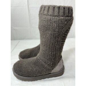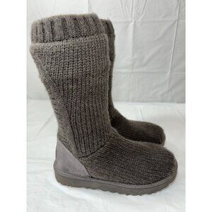 Ugg Capra Ribbed Knit Genuine Shearling Lined Gray Boots Size 5