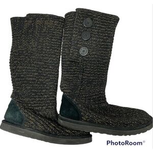 Ugg Cardy Classic Knit Sweater Boots Metallic Gold/Black