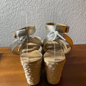 Ugg Careena Womens Gold Ankle-Strap Espadrille Platform Wedge Sandals Size 8.5