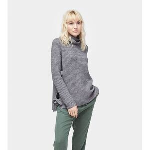 Ugg Ceanne Sweater Size S Gray Wool Blend Turtleneck Oversized Knit Side Tie