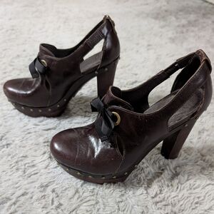 Ugg Celestina Brown Leather Platform Heels Women's Size 7.5