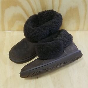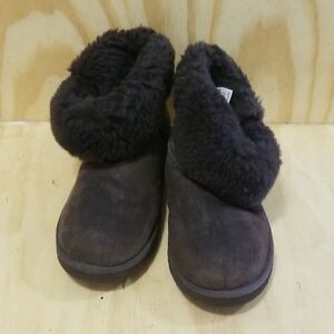 Ugg Classic Cuff Short Mini Fluff Brown Suede Sheepskin Women's Boots sz 6