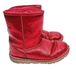 Ugg Classic II Boots 5 Red Shimmer Leather Wool Shearling Lined Pull-On