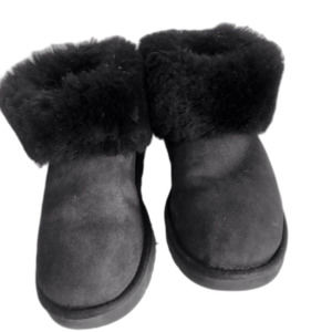 Used condition Classic Mini Fluff Genuine Shearling Bootie. Signs of wear include wear to insole, fading, scuffs, wear to sole - see photos for details. Still very warm with lots of life left. A soft, short shaft shows off fluffy genuine shearling on a cozy boot—a fan-favorite style updated for a modern look.