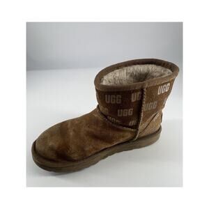 Ugg Classic Mini II Print Boots Mens Size 7 Brown Chestnut Suede Sheepskin Y2K
