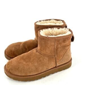 Ugg Classic Shortie Boots 7 Tan Chestnut Booties Shearling Fur Suede