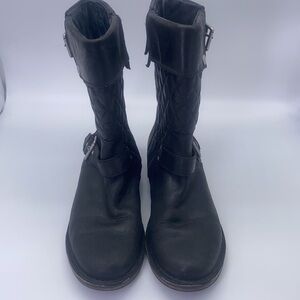 Ugg - Conor Oiled Black Leather Quilted with Silver Detail Biker Boot Size 10