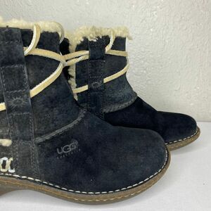 Ugg Cove Shearling Boots Womens Size 6 Black Suede Shearling Lined Ankle Booties