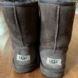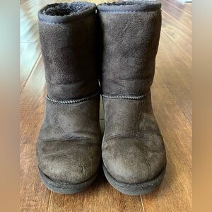 Ugg Cozy Dark Brown Shortie Shearling Suede Girl’s Boots Size 4