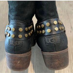Ugg Darling Black Suede Leather Harness Ankle Boots Sz 7