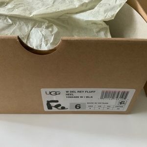Ugg Del Rey Sheepskin Black Fluff Block Heel Sandal Open Toe Ankle Strap 6 37