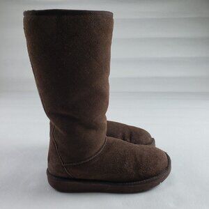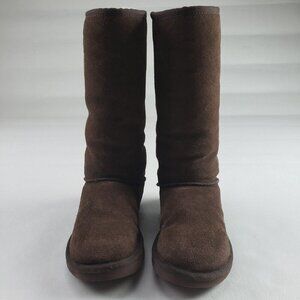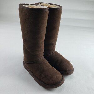 Ugg Diamond Quilted Shearling Boot Womens 6 Brown Suede Pull On Tall Lined 5342