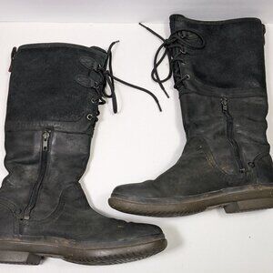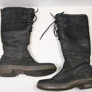 Ugg Elsa Tall Black Waterproof Leather Sherpa Lined Women Boots Size 8