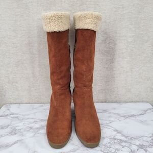 Ugg Felicity Brown Suede Wedge Boots with Real Sherpa Sheepskin Cuff And Footbed