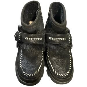 Ugg Fluff Punk UGGPure And Lamb Fur Suede Ankle Boots Fleece Black Size 5