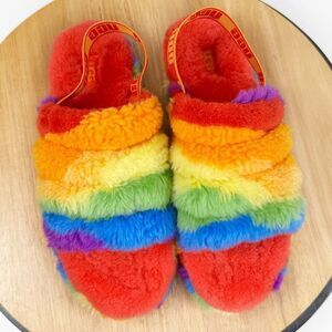 Ugg Fluff Yeah Faux Fur Rainbow Cali Collage Slide Sandals 6 Big Kid 8 Women