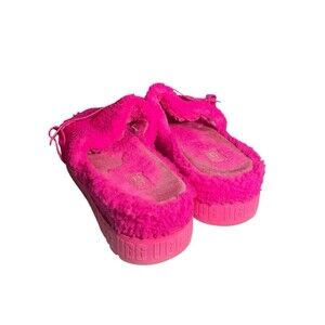 Ugg Hot Pink Furry Platform Sandals Slippers Slip On Shoes Women's 11