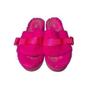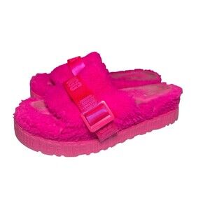 Ugg Fluffita Hot Pink Furry Platform Sandals Slippers Slip On Slides Women's 11
