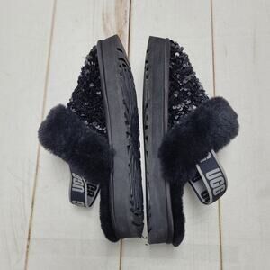 Ugg Funkette black sequin logo slippers clogs lined chunky