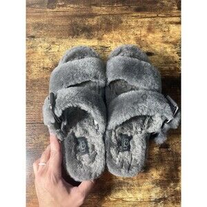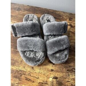 Ugg Fuzz Yeah Women's Size 7 Sheepskin Slide Lock Slipper Shoes Open Toe Gray