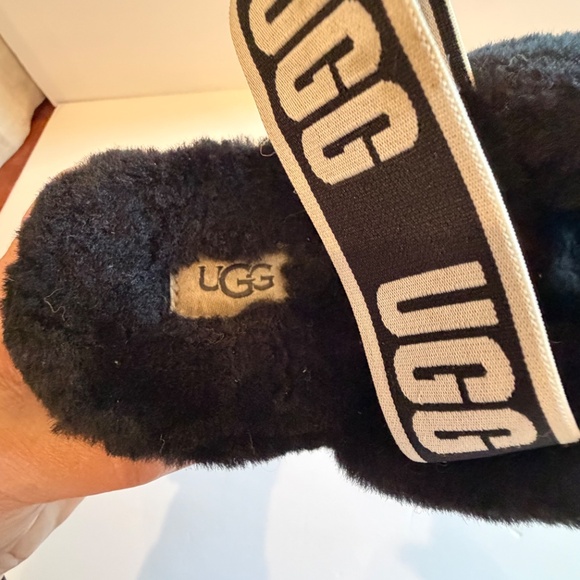 Ugg Fuzzy Black Slipper slides, Size 7 Great slippers in really good condition and perfect for the lazy day outfit. Ugg Brand Strap