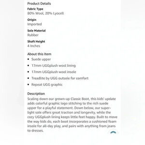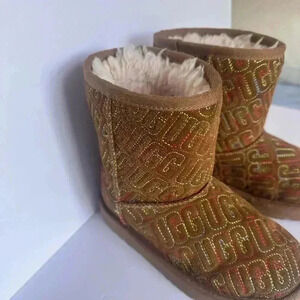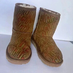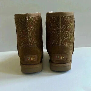 Ugg Girls Graphic Stitch Classic II Short Boots Suede Fur Chestnut size 12