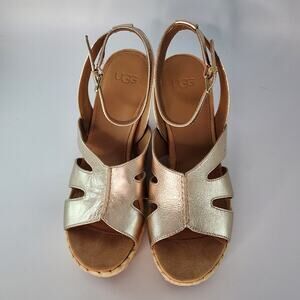 Ugg Gold Metallic Careena Wedge Platform Sandals Women's Size 8.5 NWT