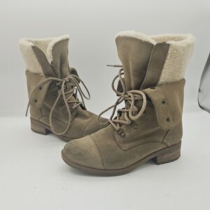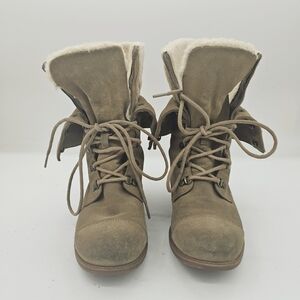 Ugg Gradin Womens Tan Suede Leather Lace Up Round Toe Stacked Heel Boots Size 8