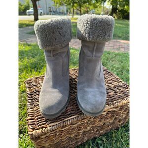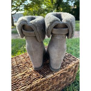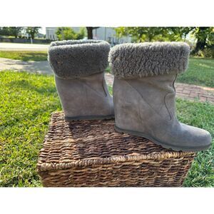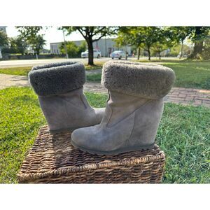 Ugg Gray Suede Leather Shearling Kyra Wedge Winter Boots Booties Size 8.5