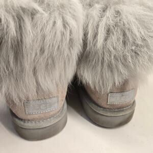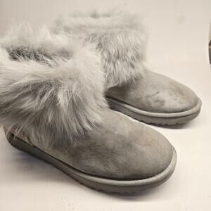 Ugg Gray & Violet Mini Toscana Cuff Suede Shearling Fur Trim Ankle Booties SZ 11