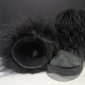 Ugg green faux fur short winter boots. Size 6. Light & normal wear.