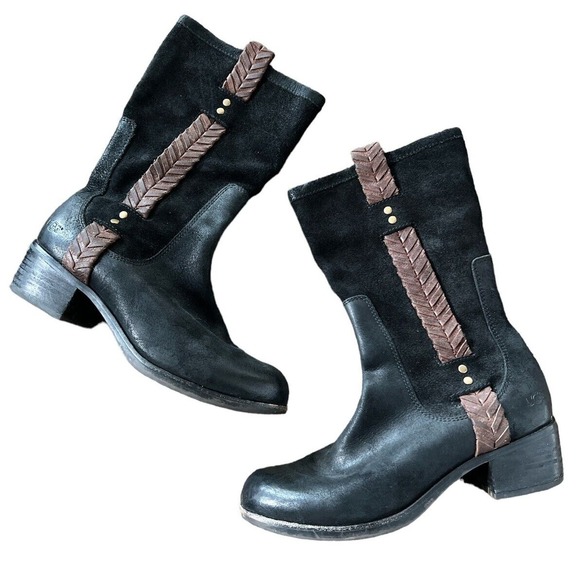 Ugg Jaspan Braided Black Suede Mid Calf Pull On Boots Size 8