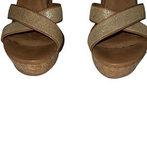 Good, preloved condition. Ugg Jazmine Metallic Chestnut Gold Coast Cork Wedge Sandals Adjustable Sz 10. Light signs of wear.