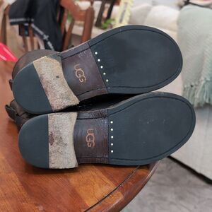 Ugg Jenna Kiltie Black Leather Shearling Lace up Combat Riding Boots Sz 7