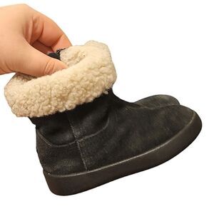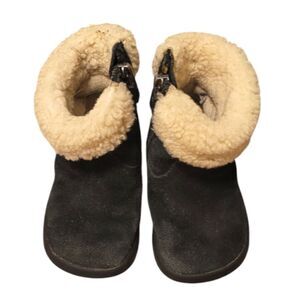 Size 04/05. In overall good pre-owned condition. Has some slight wear on the shearling that is pictured. Zippers on the side.