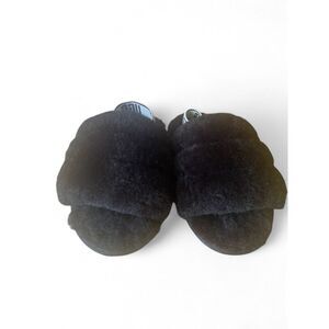 Ugg Kids Oh Yeah Black Fur Open Toe Slip On Slides Slippers US 10 EUR 27.5
