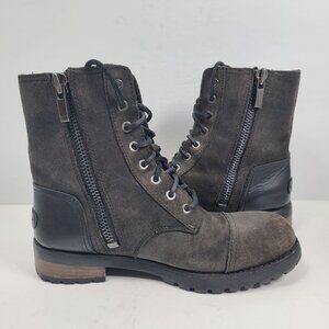 Ugg Kilmer II Women's Black Leather Combat Side Zip Boots S/N1095131 US Size 7.5