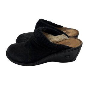 Ugg Knitted Cuff Shearling Lined Suede Wedge Mules Size 8 Black
