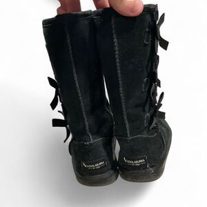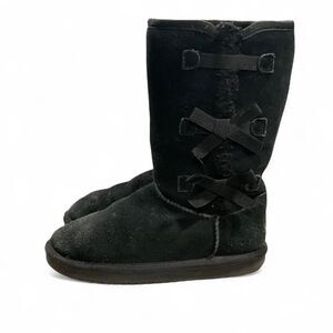bow detail, black boots, fuzzy exterior, cozy footwear, winter boots, Ugg style, Koolbura line, comfortable, casual footwear, pull-on style