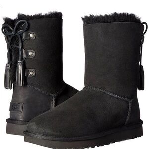 Ugg KristaBelle Lace Up Back Tassel Winter Boots Black Suede Size 8 NWOT