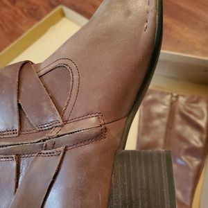 These brand new chocolate leather Ugg boots are gorgeous. The boots are durable and compliments any attire.