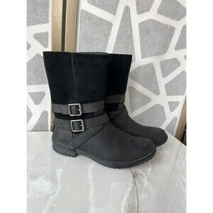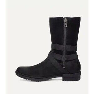Ugg Lorna Mid Black Boots Leather Suede Zip Fur Wool Lining Sz 7