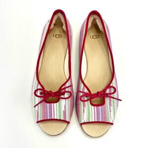 Ugg Marleigh Open Toe Flats Sz 9 Pink/Multi Serape/Canva Espadrille Platform New